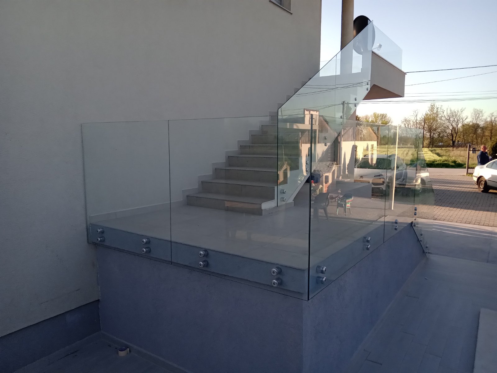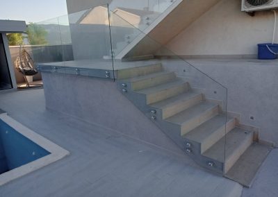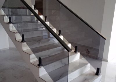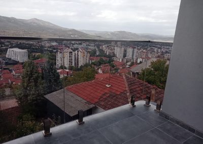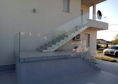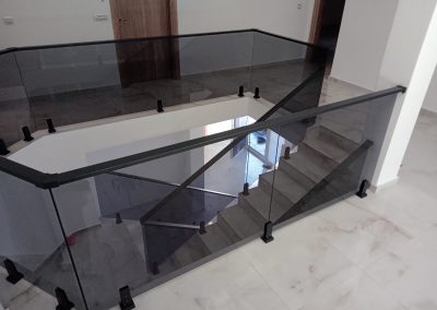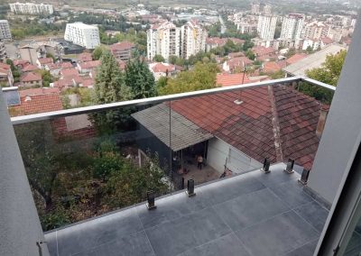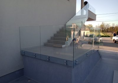 Професионална изработка на сите видови стаклени огради од памплекс и калено стакло. Во зависност од дизајнот и условите се поставува или на шина или на држачи.