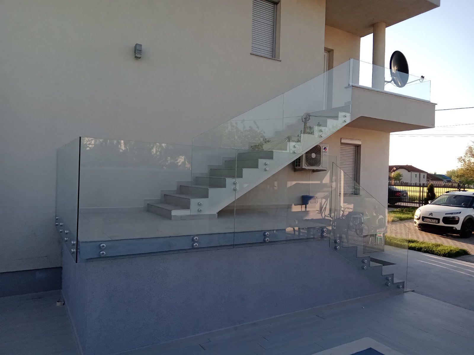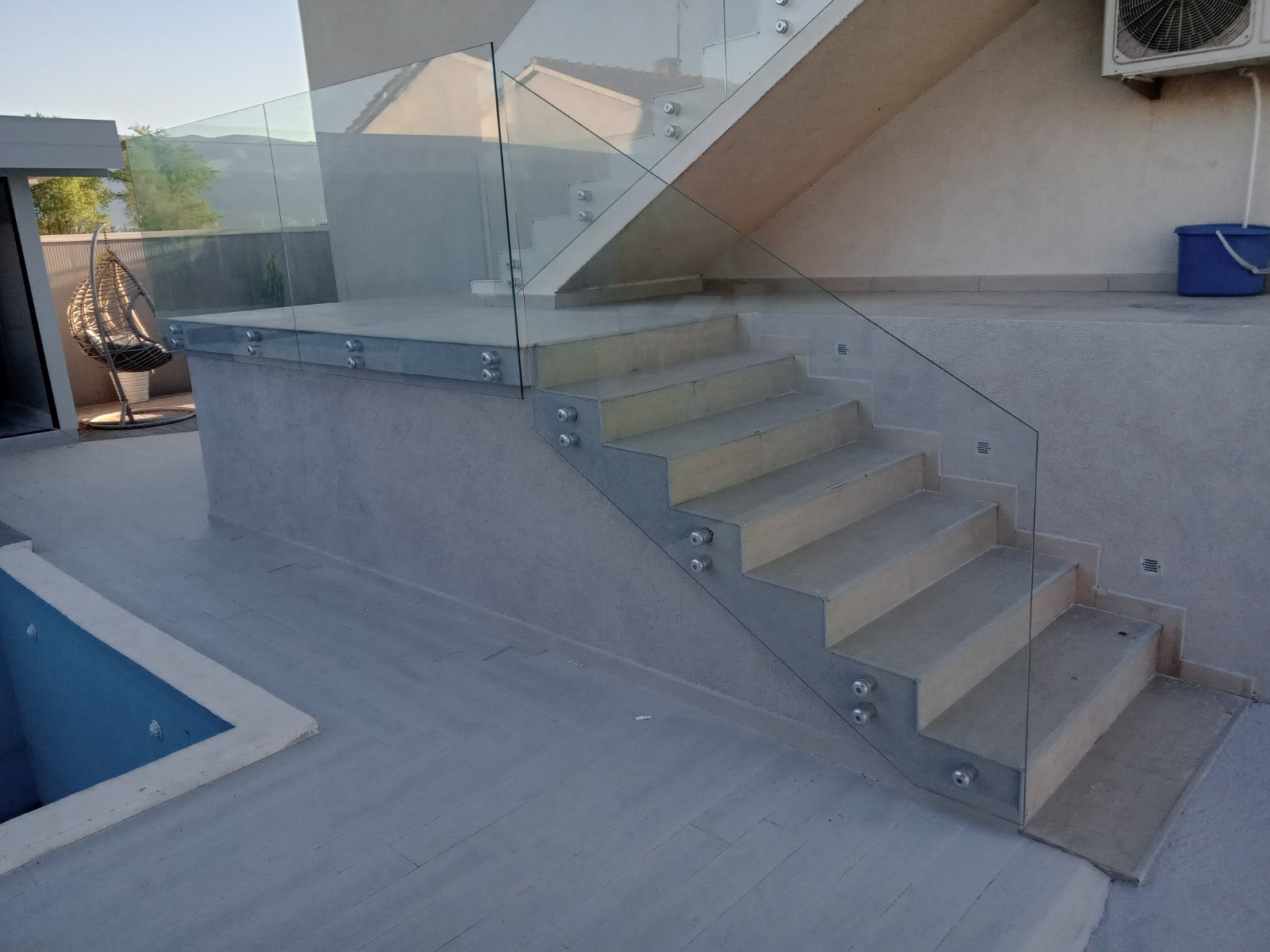 Стаклени огради од памплекс и калено стакло.